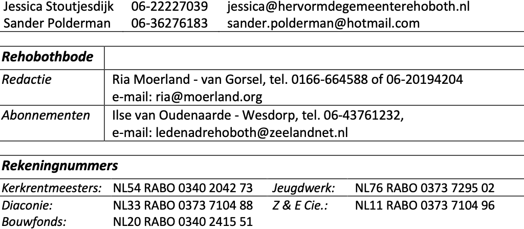 | Nelly van den Doel (voorzitter van de kerkenraad) |